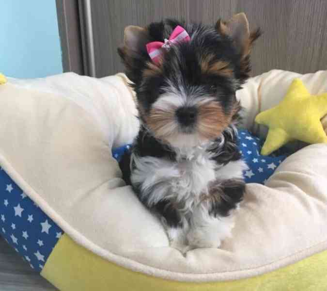 Štěňátka jorksirku bez pp biewer a merle 2 pejsci a 3 fenky cena 6 000,- Očkování, odčervení, čipovani a kupní smlouva samozřejmostí. Ihned k odběru.