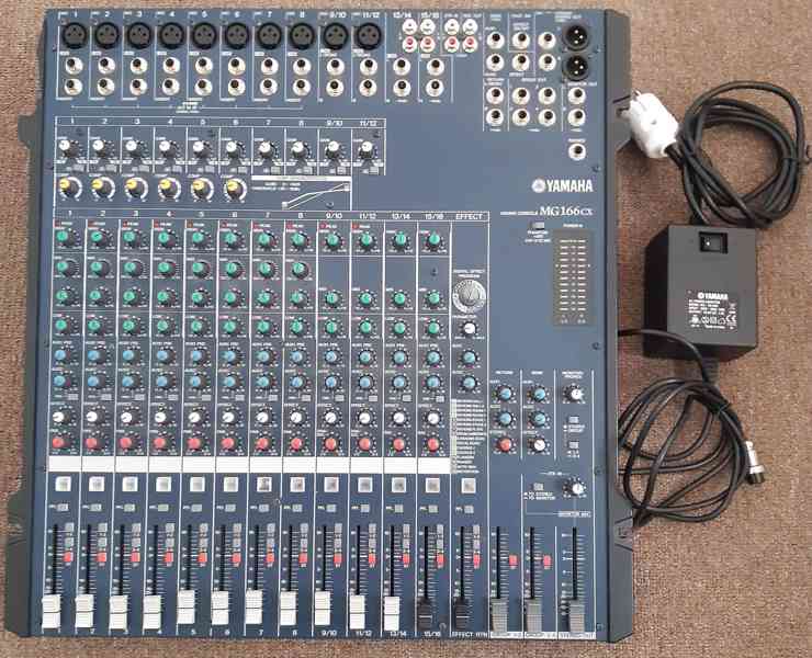 Yamaha MG 166 CX mixpult, analógový: mixpult, analógový: mixer, 8 mono + 4 stereo. 3-pásm. EQ, compressor, FX procesor. Vysoce kvalitní mic prezesilovač. 10 vstupů, 4 Stereo line vstupy, 2. Aux odešle 1 efekt (Stereo 4 skupin) HPF(CH1-12), 3 x Mid-sweep EQ (Ch1-8), COMP(CH1-6) SPX digitální multi efekt. Šířka: 478 mm. Výška: 105 mm. Hloubka: 496 mm. Hmotnost 5,5 kg. Vše v pořádku. Cena 7.499 Kč tel. 797 864 944 email: patmatvm@email.cz