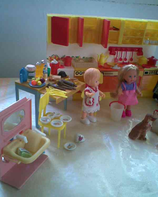 retro kuchynka s nádobíčkem a doplnky, panenky, zvířátka, pokojík, obyvák zdarma za odkoupení ihned