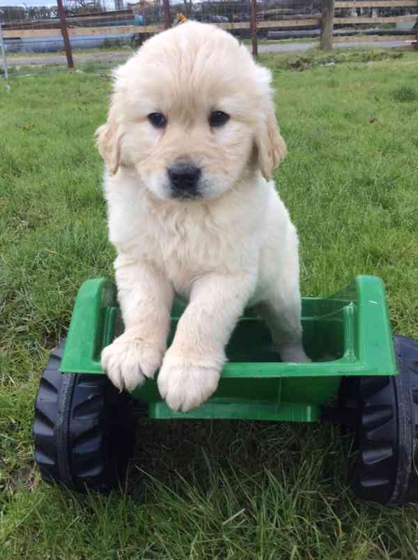 Okouzlující štěňata zlatého retrívra. Jsou dobře vycvičená a milují si hrát s dětmi a dalšími domácími mazlíčky. Jsou veterinární kontrolou a doručí se spolu s veterinárními dokumenty a veterinární knížkou. V případě zájmu mě kontaktujte s fotografií štěněte.
