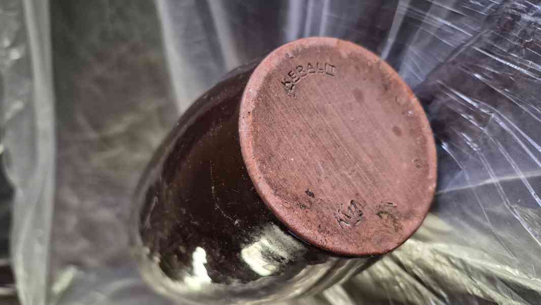 Starožitné keramické vázy: 1)Keralit KK11 ze 70. let - hnědá - napodobující bruselský styl. Původní nálezový velmi dobrý stav bez poškození.
