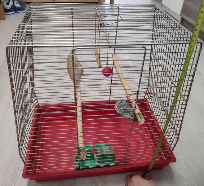 Prodám ptačí klec, vhodná např. pro papouška nebo andulku. Klec je starší, používaná, ale v dobrém stavu - viz foto. Rozměry: šířka: 30 cm, délka: 44 cm, výška: 44 cm.