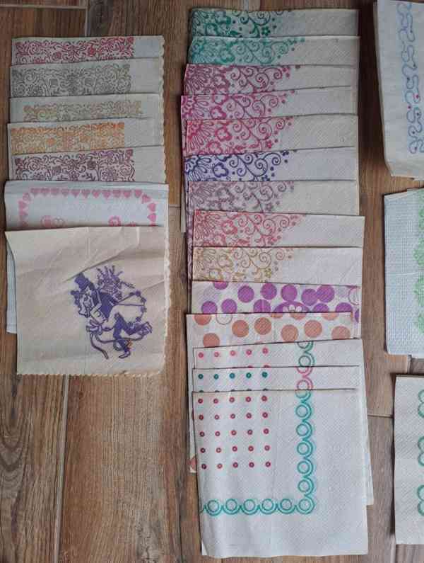 Prodám různé papírové ubrousky ze 70.-80. let, nálezový stav. Cena 250 Kč + poštovné.