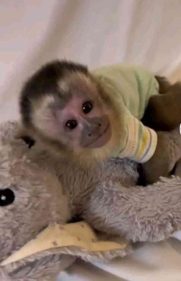 Roztomilá a vynikající samice kapucínské opice připravená k odchodu do milujícího domova a starostlivé rodiny. Je dobře vycvičená, socializovaná, naučená na plenky a veterinářsky prohlédnutá. Dodáváme s osvědčením o zdravotním stavu a veterinárním vyšetřením. Naše opice je stará 4 měsíce a bude skvělým společníkem. Kontaktujte nás pro více informací.