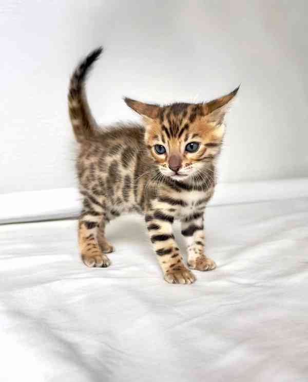 Seznamte se s naším okouzlujícím bengálským kotětem, plným energie, zvědavosti a náklonnosti. Toto kočičí koťátko je zdravé, hravé a vychované s velkou láskou a péčí.