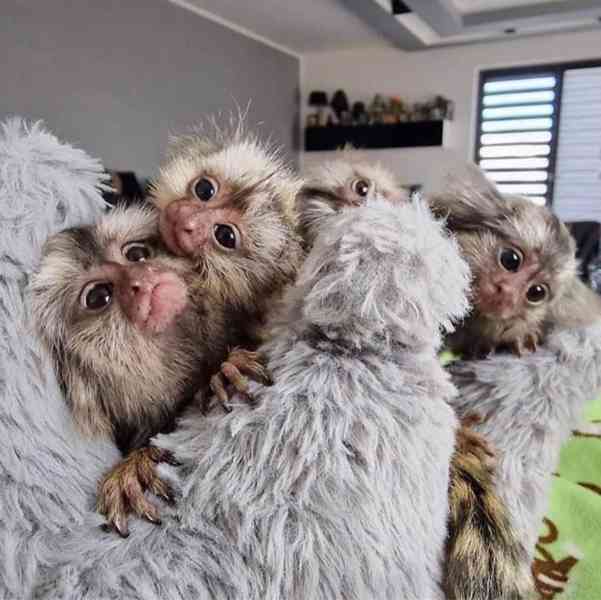Roztomilá mláďata kosmanů k adopci. Naše opice jsou naučené na vodítku a nosí oblečení. Jsou očkované, zdravé, inteligentní, akrobatické a milují společnost lidí.