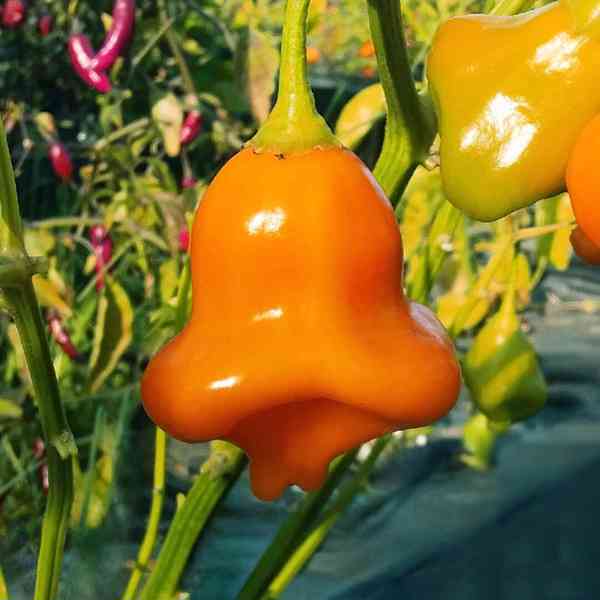 Chilli Aji Fantasy Orange vychází z kultivaru Aji Fantasy, které pochází z Finska. Rostlina je relativně vysoký a hustě větvený keř, který může dosahovat výšky okolo 1,2 - 1,5 metru a průměru koruny okolo 1 metru. Plody jsou zvonkovité, asi 4 - 6 cm dlouhé a 3 - 5 cm široké. Zprvu jsou spíše světle zelené, následně zrají do oranžové barvy. Na konci léta po ochlazení mohou plody dozrávat spíše do tmavě žluté barvy. Plody mají velmi sladkou a ovocnou chuť doprovázenou o jemné citrusové aroma. Pálivost dosahuje relativně nízkých hodnot a pohybuje se jen okolo 25 tisíc SHU. Balení obsahuje 1 sazenici za 50 Kč. Semena – neoseeds