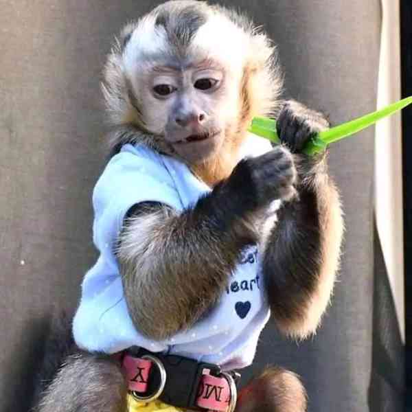 Představujeme miminko, naši energickou kapucínskou opici. Miminko miluje lezení, skákání a prozkoumávání okolí, takže je ideální pro majitele s dostatkem prostoru. Miminko je zvídavé a inteligentní povahy, snadno se trénuje s pozitivním povzbuzením. Miminko potřebuje zkušeného majitele, který mu poskytne dostatek pozornosti, času na hraní a interakce. Ideální majitel pro Jaspera je někdo, kdo mu dokáže poskytnout prostorné a stimulující prostředí. Moje miminko miluje prozkoumávání a hraní si a vyžaduje spoustu hraček a lezeckých konstrukcí. Pro více informací nás kontaktujte e-mailem.