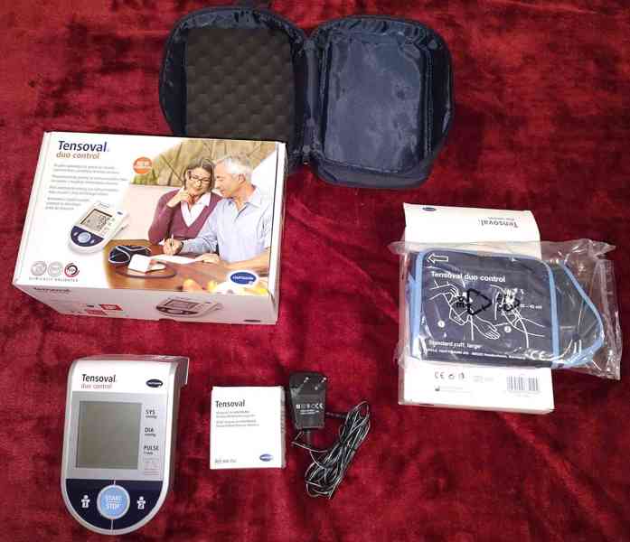 Prodám domácí tlakoměr do firmy Hartmann Tensoval duo control. Je v perfektním stavu, téměř nepoužívaný vč. elektrického adaptéru, originálně zabalené (nikdy neotevřené) manžety velikosti L (32 - 42 cm) s technologií Comfort Air pro bezbolestné nafouknutí, cestovního pouzdra, návodu a krabice. Kombinuje 2 metody měření - poslechovou a oscilometrickou. Spolehlivě naměří krevní tlak i osobám s nepravidelným srdečním rytmem. Jedná se o certifikované zařízení - ANSI/AAMI (Sdružení pro zdokonalování lékařských přístrojů, USA), EHS (Evropská společnost pro hypertenzi), BHS (Britská společnost pro hypertenzi), Německá liga pro hypertenzi, které mu udělila pečeť „Známky kvality“. Má velký čitelný displej s možností uložení dat pro 2 osoby + režim návštěvy a vypočte průměr z ranních a večerních hodnot měření.
