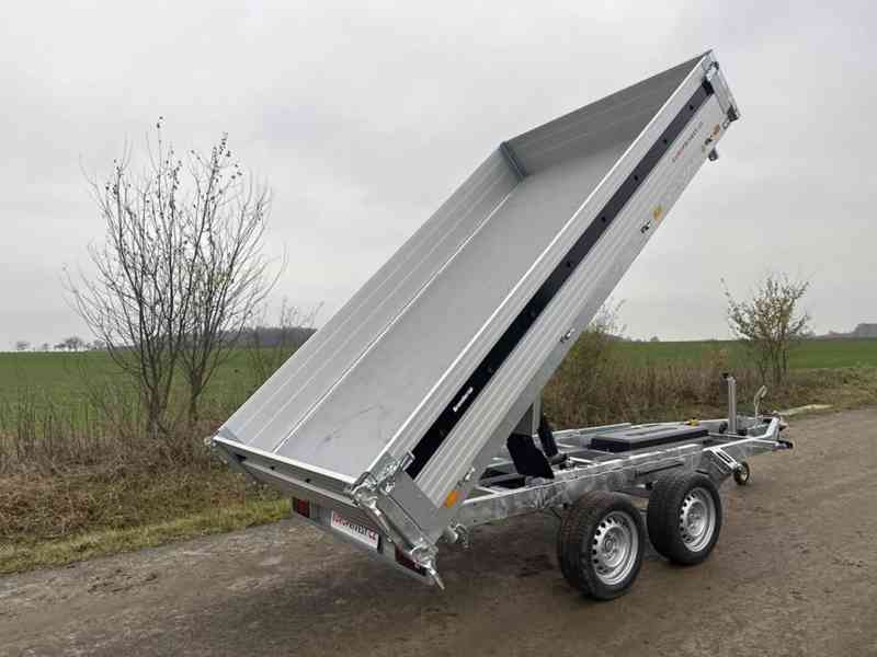 Vynikající jízdní vlastnosti, zaručená dostupnost náhradních dílů, odolné zámky , pevný rám, boční a zadní výztuže, podlaha z pozinkovaného plechu, integrované nájezdy uložené pod korbou, ochrana proti krádeži - pumpa a akumulátor jsou připevněny pod korbou. Akumulátor lze dobíjet pomocí zásuvky v rámu. Rezervní pumpa. Snadná změna směru sklápění - změna směru sklápění je snadná i v případě maximálního zatížení přívěsu. Ovladač hydrauliky s magnety - přenosný ovladač hydrauliky umožnuje ovládat sklápění z nejvýhodnějšího místa. Díky magnetům ho můžete umístit na libovolnou část přívěsu.