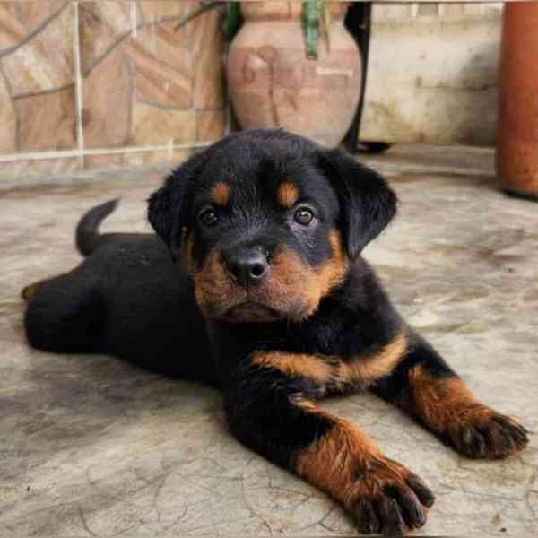 12týdenní štěňata rotvajlera připravená k adopci. Štěňata vyrůstala ve velmi klidném prostředí a jsou zvyklá na děti. Vyrůstala s velkou láskou a péčí. Jsou včas očkována a budou velmi dobrými společníky pro vaši rodinu.