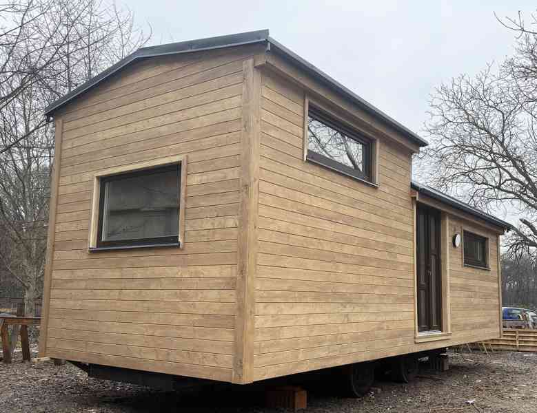 Prodám nově postavený patrový Tiny House o rozměrech 7,6 m (délka) x 2,96 m (šíře). Vnitřní výška činí 2,90 m, celková vnější výška je 4,20 m. Jako zkušený truhlář s letitou praxí v oboru maringotek si zakládám na precizním zpracování a dodržování všech norem.