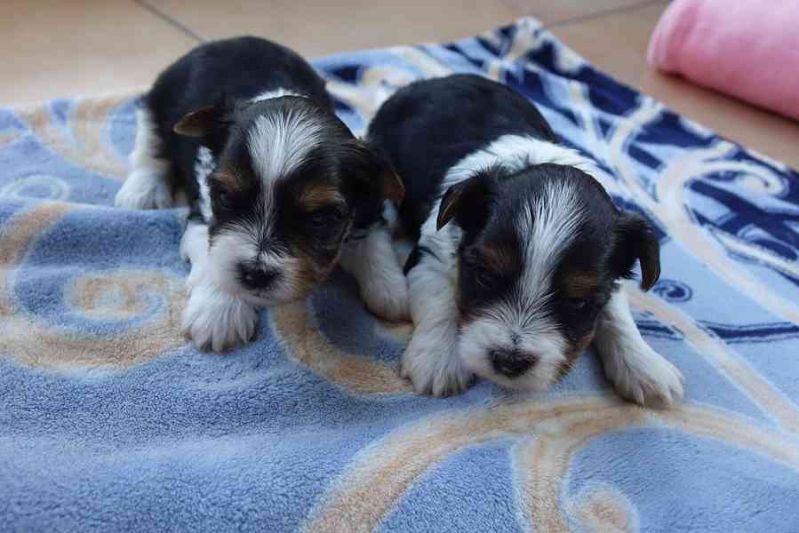Naše malá CHS nabízí k rezervaci štěňátka biewer jorkšírů s PP, 2 pejsky a jednu fenku. Pejskové vyrůstají v rodině, jsou vymazlená, zvyklá na děti i kočku. Štěňátka jsou učena na plenku, jsou pravidelně odčervována a už začínají papat. Při odběru