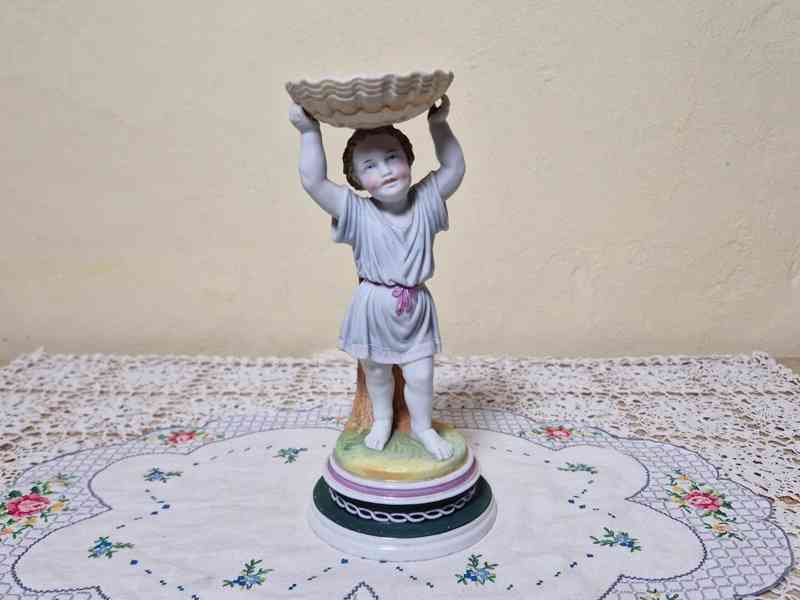 Krásná porcelánová plastika Chlapec s mušlí, biedermeier - Horní Slavkov, 19 stol.