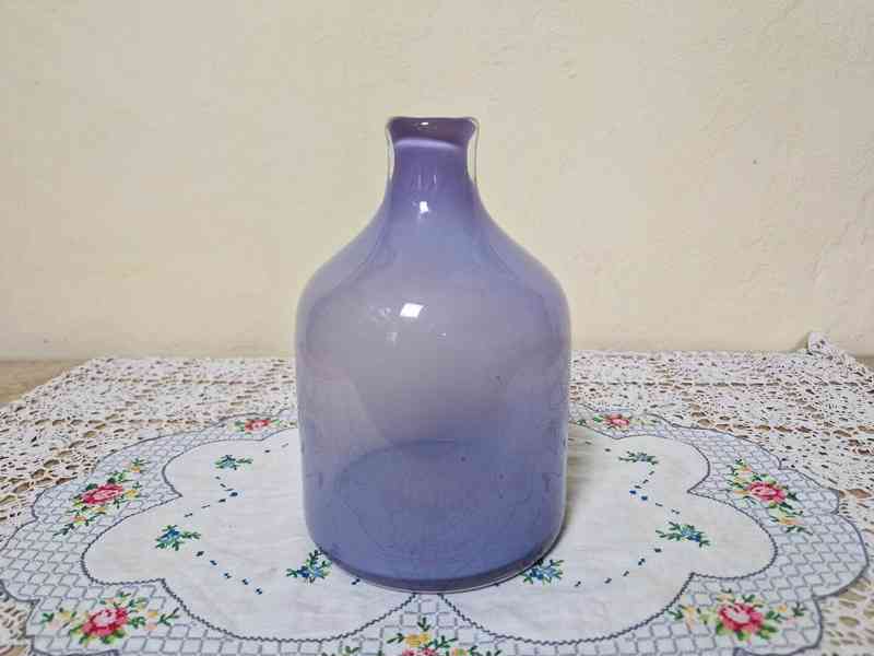 Masivní fialová Váza s úzkým hrdlem, hutně zpracované sklo - J. Svoboda, Signováno na dně, datováno 1980.
