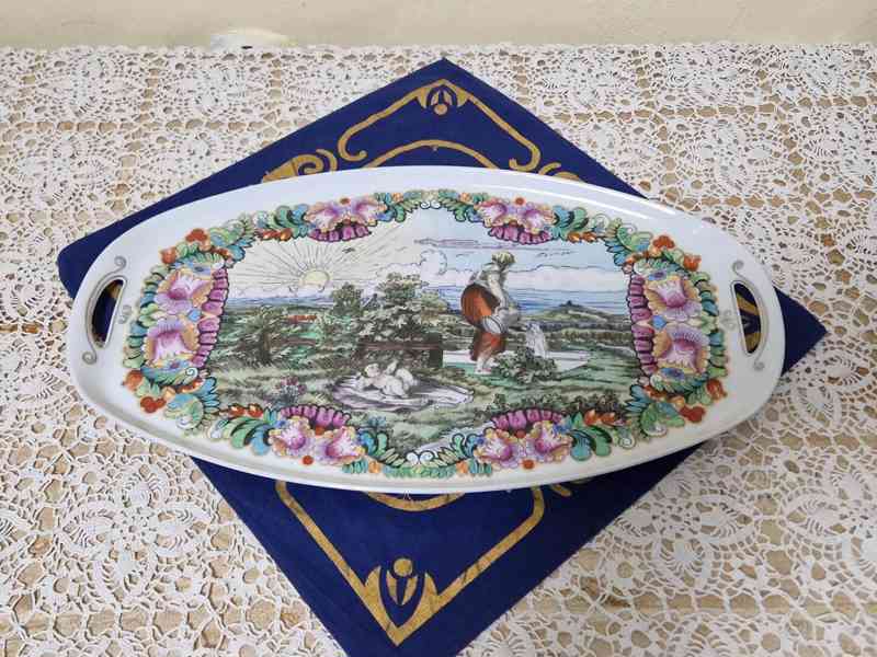 Luxusní obří tác, precizní pestrá ruční malba - značeno, Jihočeské malovánky, V, podhrázský, 1940.
