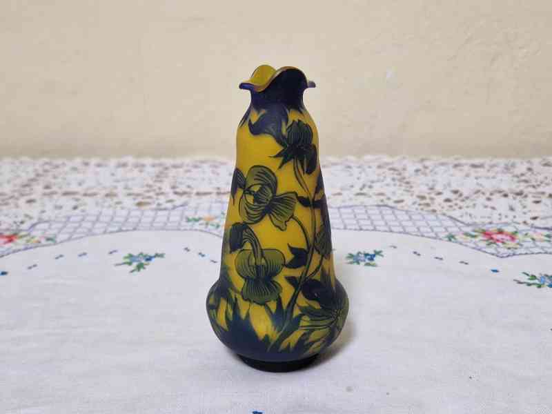Krásná žlutá přejímaná a matovaná váza Loetz Richard, kamejové sklo, 1 čtvrtina 20 stol.