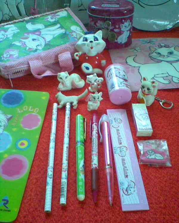 taštička pouzdro, tužky, pero, propisky, pravítko, ořezávátko, gumy, dva sešity, samolepky, přívěšek, pokladnička, zdarma podložka, lampion