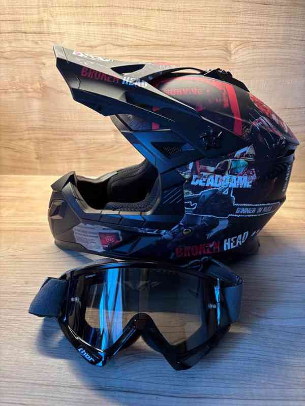 Motokrosová přilba od značky Broken Head ve velikosti – S (55/56). Je málo použitá a ve velmi dobrém stavu, včetně brýlí Thor.