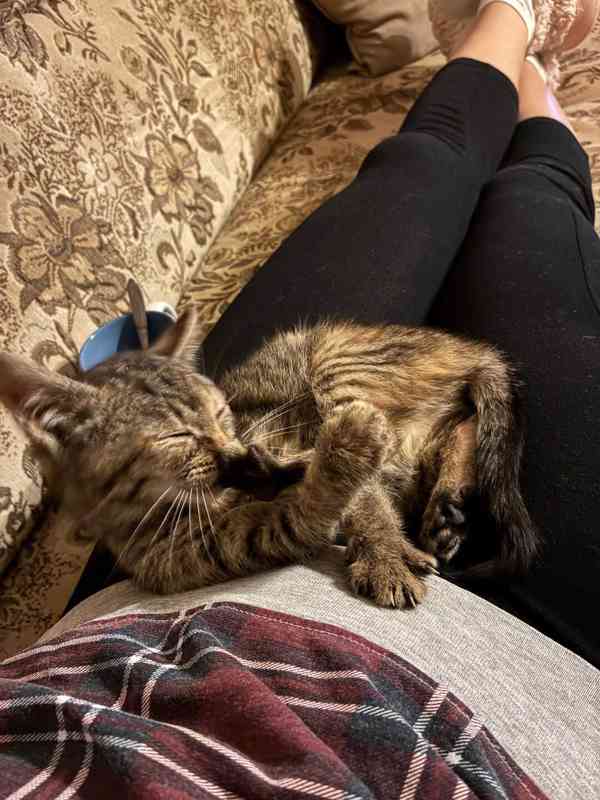 Do dobrých rukou darujeme naši umazlenou mourovatou kočičku. Je zvyklá na venek, ale míváme ji i doma, je naučená také na kočičí záchod :) Vychází s jinými kočkami a psy.