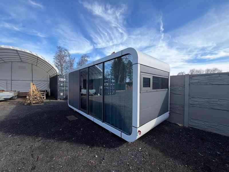 Nabízíme k prodeji designový mobilní dům určený pro celoroční užívání, který spojuje moderní styl, kvalitní zpracování a chytré technologie.