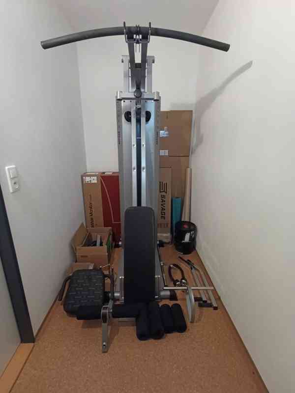 Stroj byl málo používaný, převážně během covidového lockdownu, jinak jen stál ve sklepní posilovně. Aktuálně je již částečně rozebraný a má prasklé jedno lanko v kladce – nutná výměna (běžná věc, nové lanko stojí pár stovek). Jinak je konstrukce v dobrém stavu a po složení je vše plně použitelné.