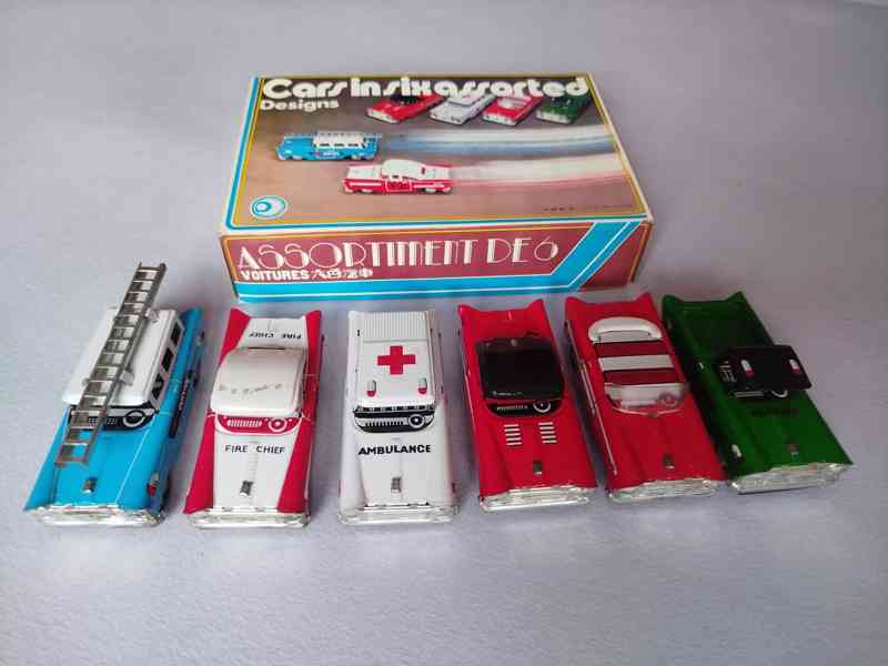 Prodám sadu plechových autíček s pohonem na setrvačník ve velmi dobrém a originálním stavu. Možnost předání i ve Strakonicích nebo Písku.