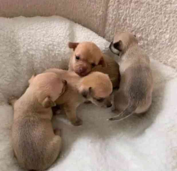 Čivava, chihuahua. Zadáme krásná štěňátka čivavy, krátko i dlouhosrstá, s průkazem původu. Zdraví (o. pately 0/0, oči i srdce OK), ocenění rodiče. Štěňátka socializována, učena čistotě. Při odběru budou opakovaně odčervena, očkována, čipována, se smlouvou, balíčkem a s krmením, na které jsou zvyklá. Těší se na milující páníčky. Chovatelský servis pro majitele.