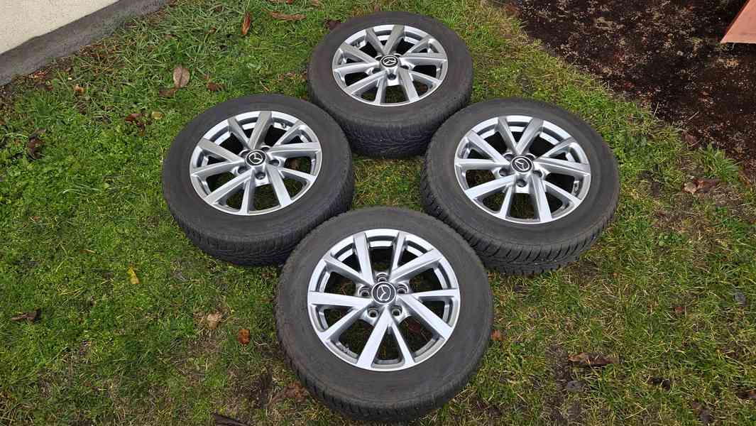 Mazda 3 zimní kola, pneumatiky Nokian 205/60 R16 92H (vzorek 7mm) elektrony, originál 16" alu disky 6,5Jx16 5x114,3 ET45 střed 67,1mm (jako nové) cena je uvedena za celou sadu 4 kol, vyzvednutí Kralupy, kola jdou i na Mazda 6, Mazdu, včetně TPS senzorů, čidla měření tlaku, sada zimních pneumatik, disků na prodej, prodám, 205 60 16, 205/60/16.