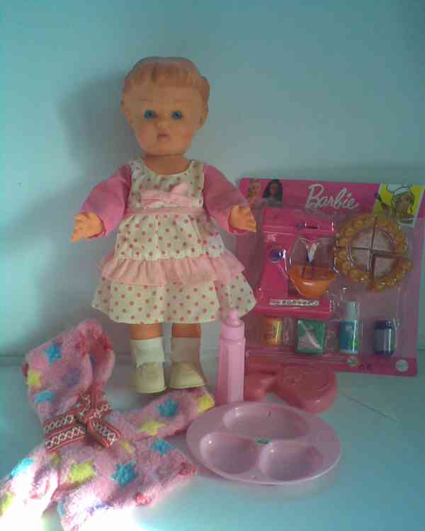 pěkné nové hračky kromě gumové panenky ale jako nová, batůžek, chodící štěkací pejsek, pexeso, dráček, pohádková knížka