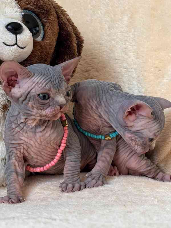 Vynikající vrh koťat Sphynx. Máme samce i samice. Jsou očkovaná, odčervená, s veterinární kartou, mikročipem, písemnou zárukou a fakturou. Odchována v rodinném prostředí. Kontaktujte nás přes WhatsApp: +34 691 11 04 90
