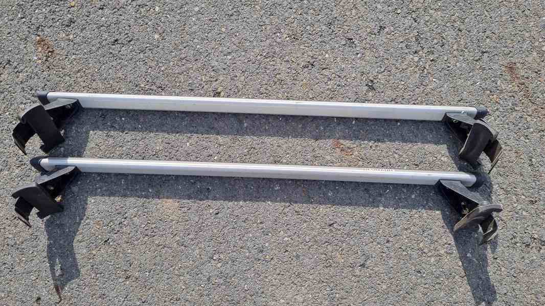 Prodám střešní nosič Neumann na Škodu Octavia II bez lyžin. Nosnost 50 kg, délka tyčí 112 cm, zamykání.
