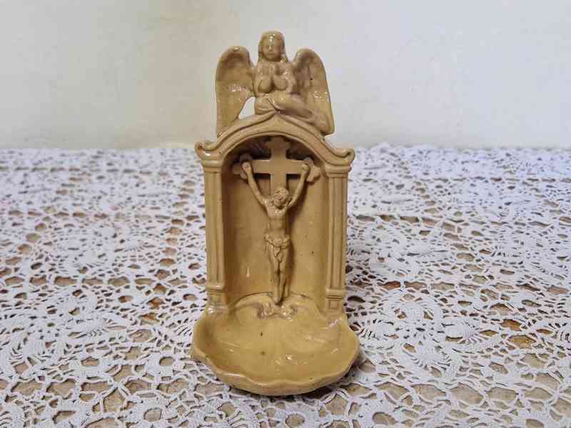 Krásná velmi stará porcelánová Kropenka s Ježíšem a Andělem - Severní Čechy, značeno, 2 pol. 19 stol.