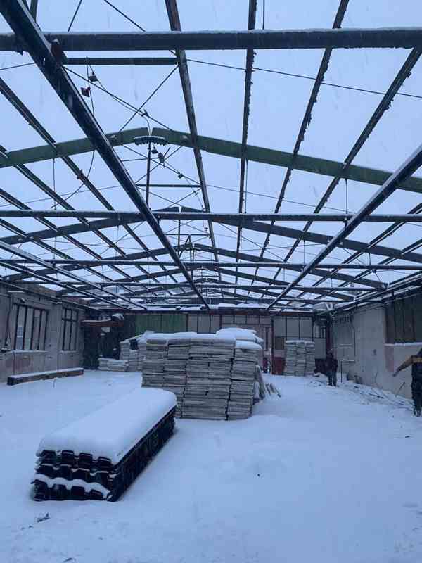 Součástí je ocelová konstrukce, cca 50 tun hliníkových plechů na halu, spojovací materiál