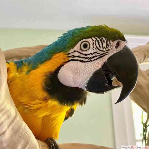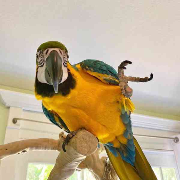 Dvouletý modrozlatý papoušek ara k adopci. Velmi milý kluk, už mluví. Přiveze se svou velkou klecí, všemi hračkami a volně stojícím bidýlkem. Pro více informací mě prosím kontaktujte.