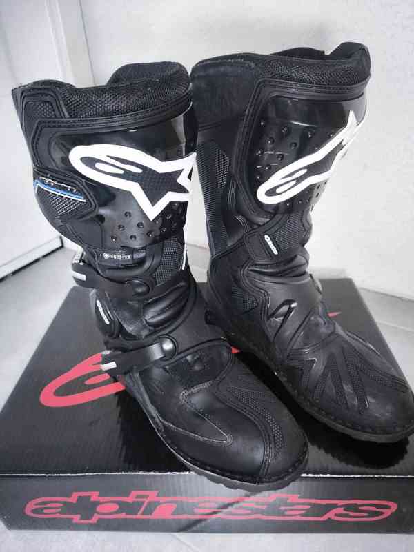 Kvalitní zánovní enduro boty od značky Alpinestars model Toucan Gore-Tex v udané velikosti – 43 (9) vhodné i na nohu o číslo menší. Jsou nové pouze 3× odzkoušené, samozřejmě výborný stav. Včetně originální krabice.