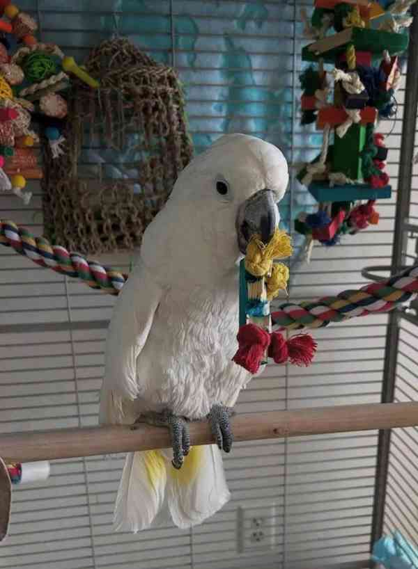 Mám dva papoušky kakadu, samce a samici. Nejsou příbuzensky příbuzní, samec má asi rok a samici něco málo přes 2 roky. Tito papoušci jsou ručně odchováni a mají úžasnou povahu.