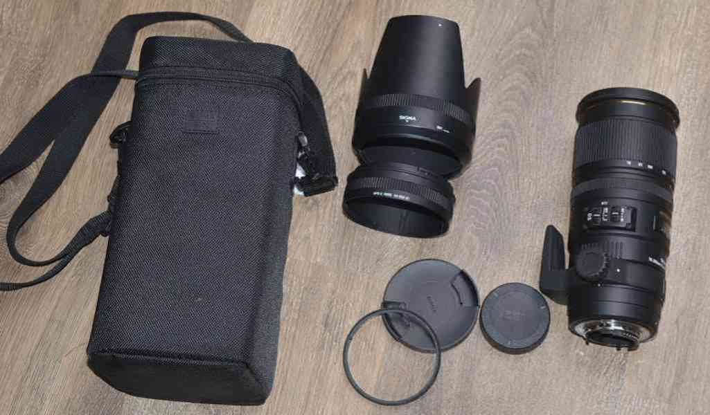 Součástí aukce je: Objektiv, obě víčka, sluneční clona, pouzdro, hama UV filtr.