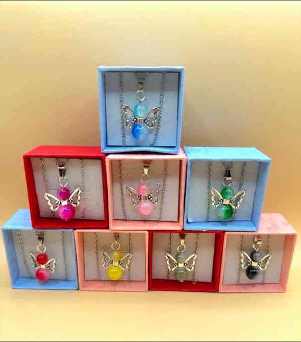 Jemná sada, která symbolizuje ochranu, světlo a štěstí. Andělský přívěsek se skleněným korálkem dodá vašemu stylu něžný třpyt.