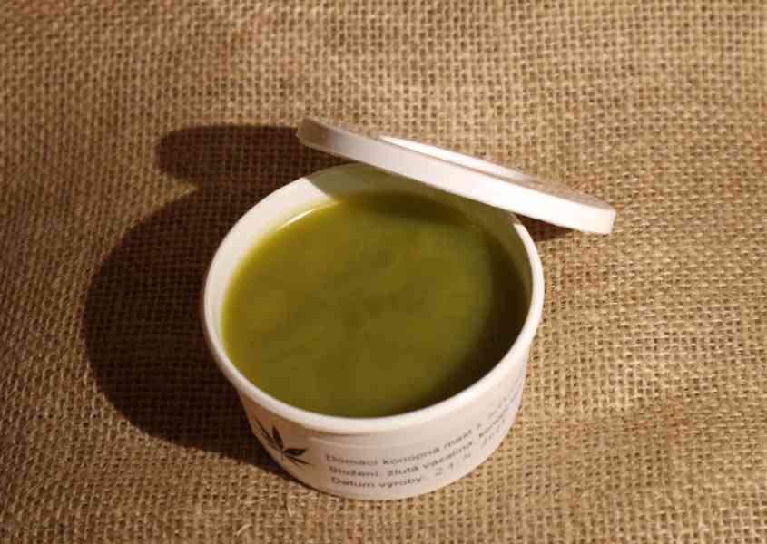 Poctivá silná konopná mast vyrobená z palic i listů konopí, květů měsíčku lékařského a žluté hypoalergenní vazelíny.