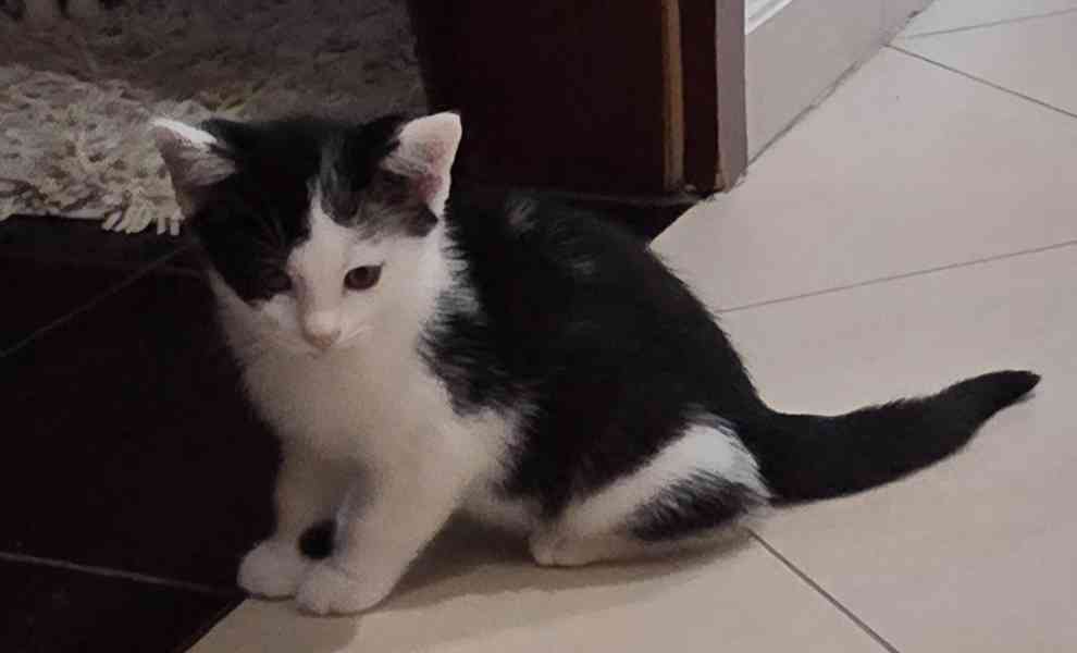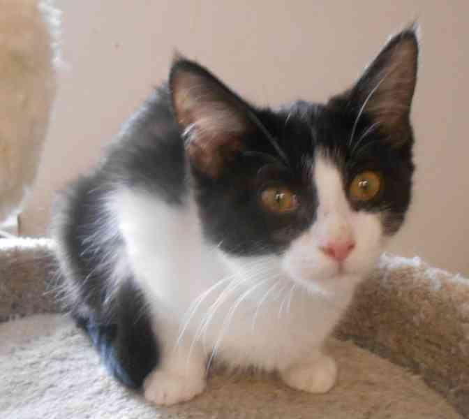 Bíločerná 3,5měsíční Amálka, čilá, hravá, veselá hledá domov. Její sestřičky Adélka a Adinka už domov našly. S nimi si Amálka hrála, běhala, zápasila. Zatím je spokojená, stará se o ni její mamča. Amálka je ještě malé kotě a tak hledá domov, kde by měla kotě, nebo čilého kočičího parťáka pro hru a aby nebyla dlouho sama doma. Je očkovaná, odčervená, zvyklá žít v bytě, samozřejmě čistotná, usilovně uklízí v záchůdku. Můžete ji mít za příspěvek na péči.