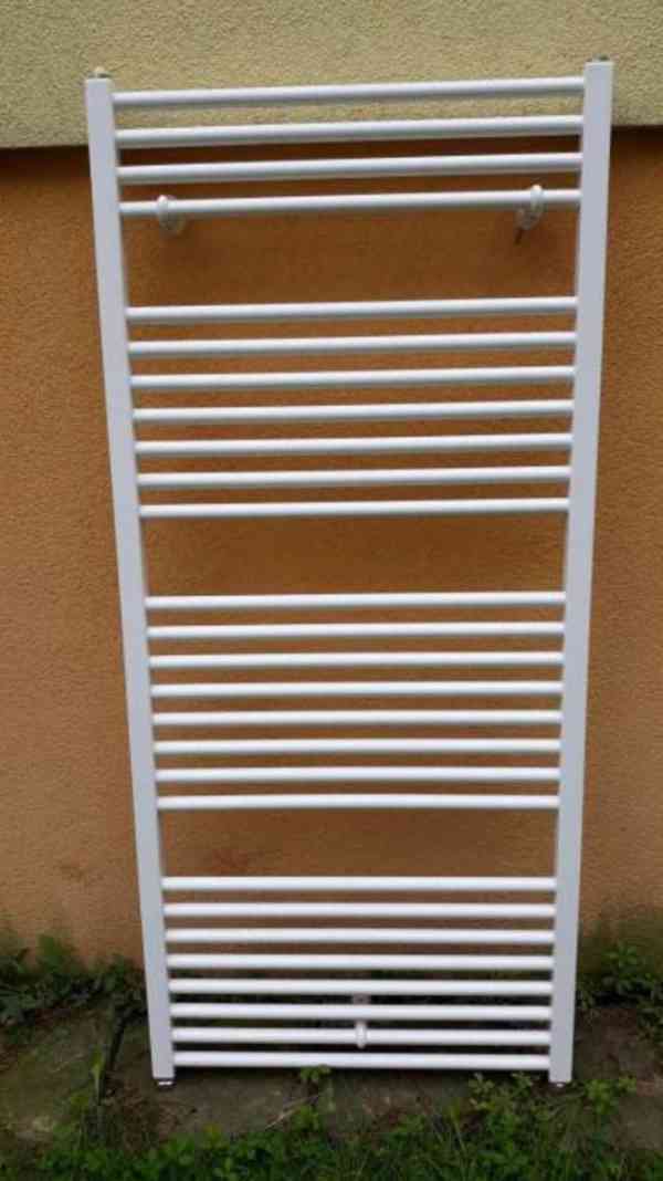 Prodám koupelnový rovný bílý radiátor do bytu ve výborném stavu – viz fotografie (foceno po demontáži před domem).