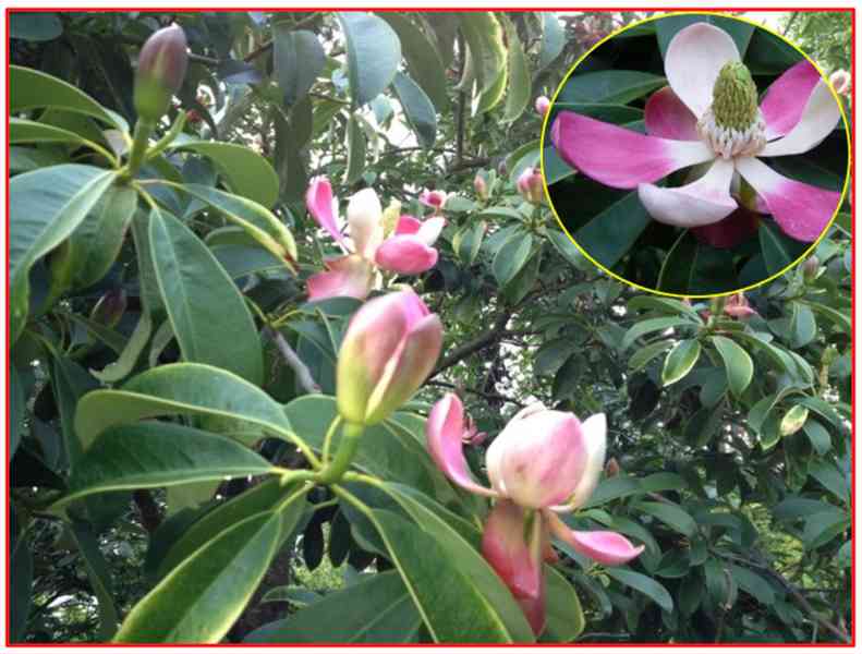 Manglietia Insignis pocházející z Číny je stálezelený strom, zvláště okrasný svými nápadnými světle až tmavě růžovými květy se silnými okvětními lístky a tmavě zelenými lesklými kopinatými neopadavými listy dlouhými cca 10 – 20 cm. Manglietia Insignis vykvétá v květnu až červnu. Květy se objevují postupně po několik týdnů. Než se červeno - zelené pupeny květů otevřou, jsou vzpřímené jako svíčky. Působí na stromě velice krásným a dekorativním dojmem. Někdy se z květů vytváří 5 – 10 cm velké fialové plody.