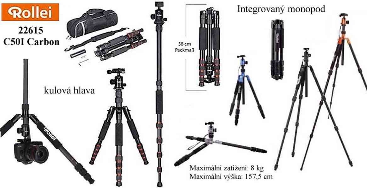 Karbonový stativ je vybaven kulovou hlavou a integrovaným monopodem. Základnou stativu jsou gumové nožičky nebo hroty. Minimální výška stativu je 2,5 cm, maximální pak 157 cm. Celková hmotnost stativu činí 1335 g a unese zátěž až 8 kg.
