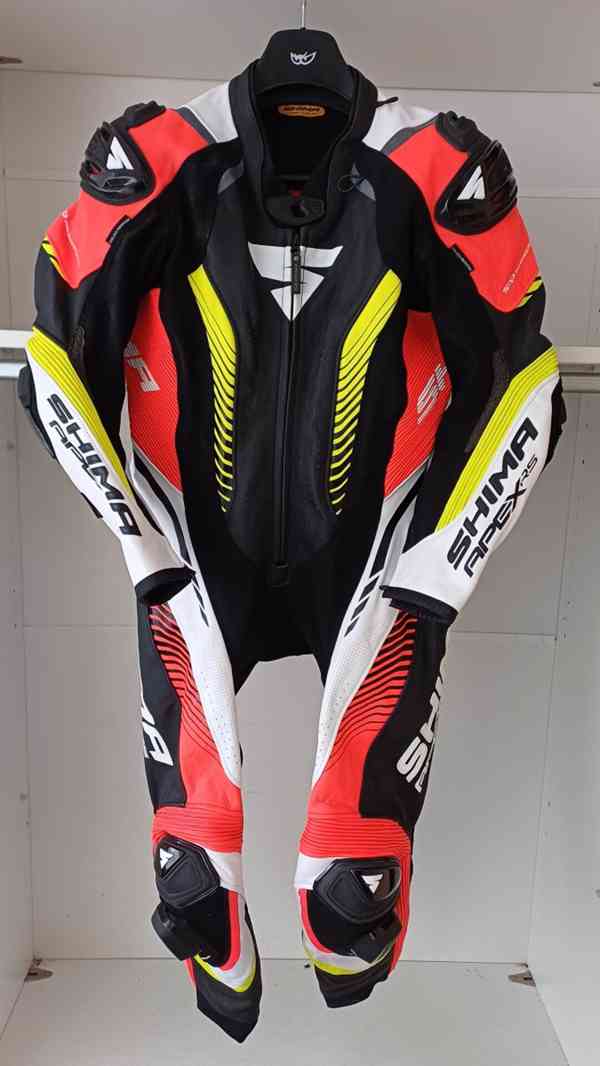 Kožená 1 – dílná kombinéza od značky Shima model Apex RS ve velikosti – 54. Je nová a pouze doma odzkoušená, samozřejmě výborný stav.