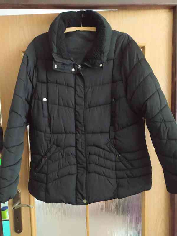 Dámská málo nošená zimní černá teplá bunda s kapsami vpředu na zip přes který je klopa na patenty.Kapsy jsou nahoře i dole.U krku má zateplený stojáček,nestudí tak na obličeji.Délka cca 75.cm.Zašlu zásilkovnou nebo balíkovnou za 50.Kč.