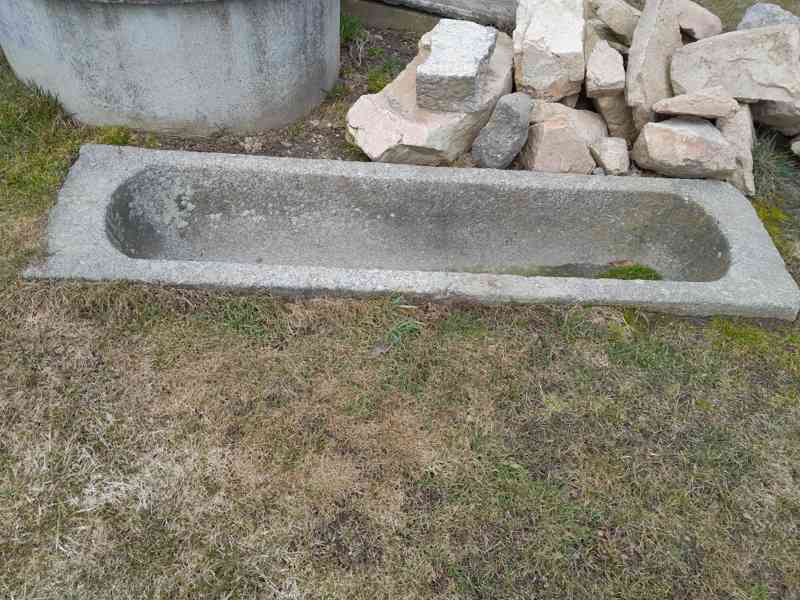 Kamenné koryto, délka 2m, šířka 0,5m. Na jedné straně otvor na odtok.