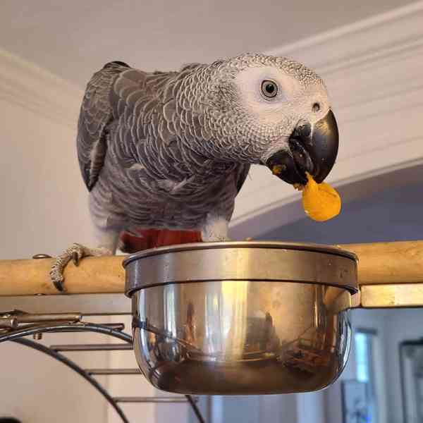 Tento ručně odchovaný papoušek šedý je zdravý, společenský a již mluví. Dodává se s doklady a veterinární prohlídkou. Perfektní společník do milujícího domova.