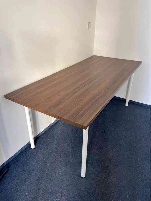 Stůl 180x80cm, na míru uříznutá pevná dřevotřísková 3cm deska + 5 nohou. (obojí z IKEA - Deska EKBACKEN, Nohy ADILS)