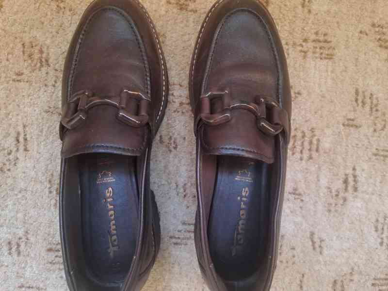 zn. Tamaris, vel. 39, kůže hnědá, téměř nenošená (koupě 10/2025). Původní cena 2000 Kč, nyní 500 Kč. Tel.: 604 727 396